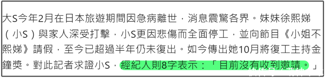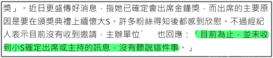 后续小S经纪人澄清说没有收到金钟奖邀约,主办方那边也说没有这个消息,这才打消外界质疑。
