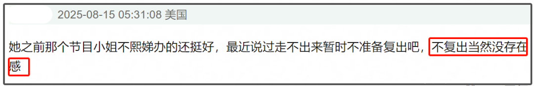 可能也是因为这个原因,小S迟迟未能复工,如今都没什么“存在感”了,热度降低不少,网友都担心她停工太久会不想复工,久而久之直接提前退休。
