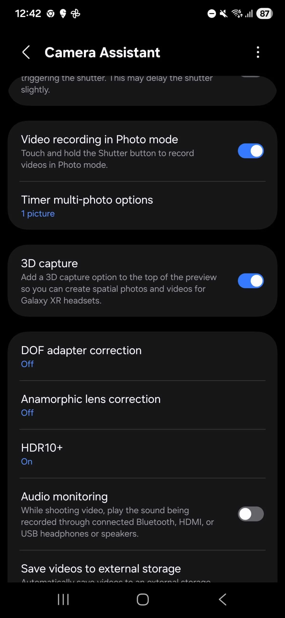 打开 3D 影像的开关后,您就可以为 Galaxy XR 头显拍摄空间照片、视频。